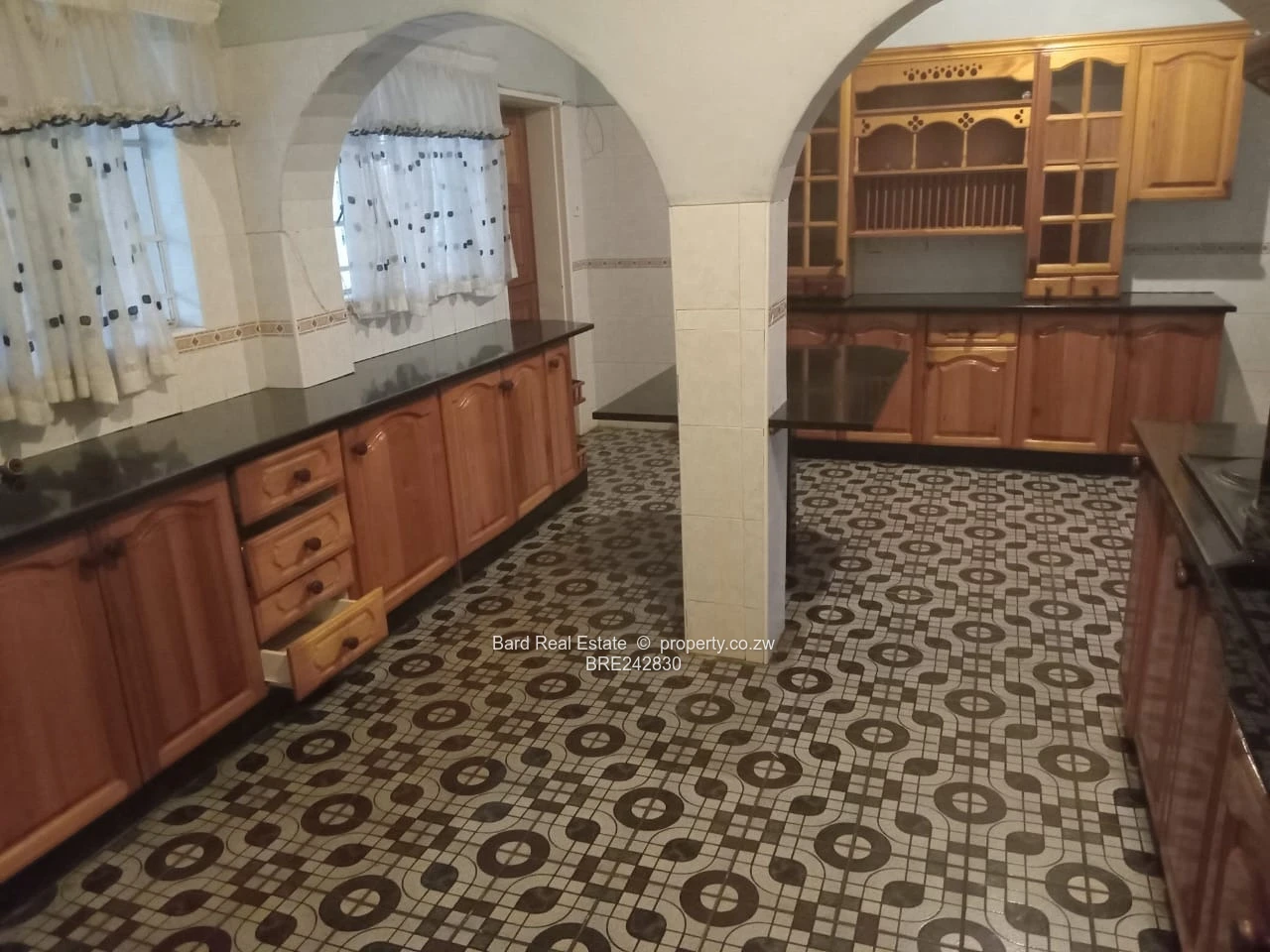 Located in Marlborough near Harare Drive, is a very neat 4 bed house, main ensuite, dinning, lounge x 2, study room, modern fitted kitchen with pantry, separate toilet and bathroom with tub and shower, guest toilet, a laundry room, double lockup garage, a reliable borehole water supply, solar system, greenhouse, very secure, walled and gated. Available for immediate occupation. There’s also a 2 bedroomed cottage and 3 roomed staff quarters.