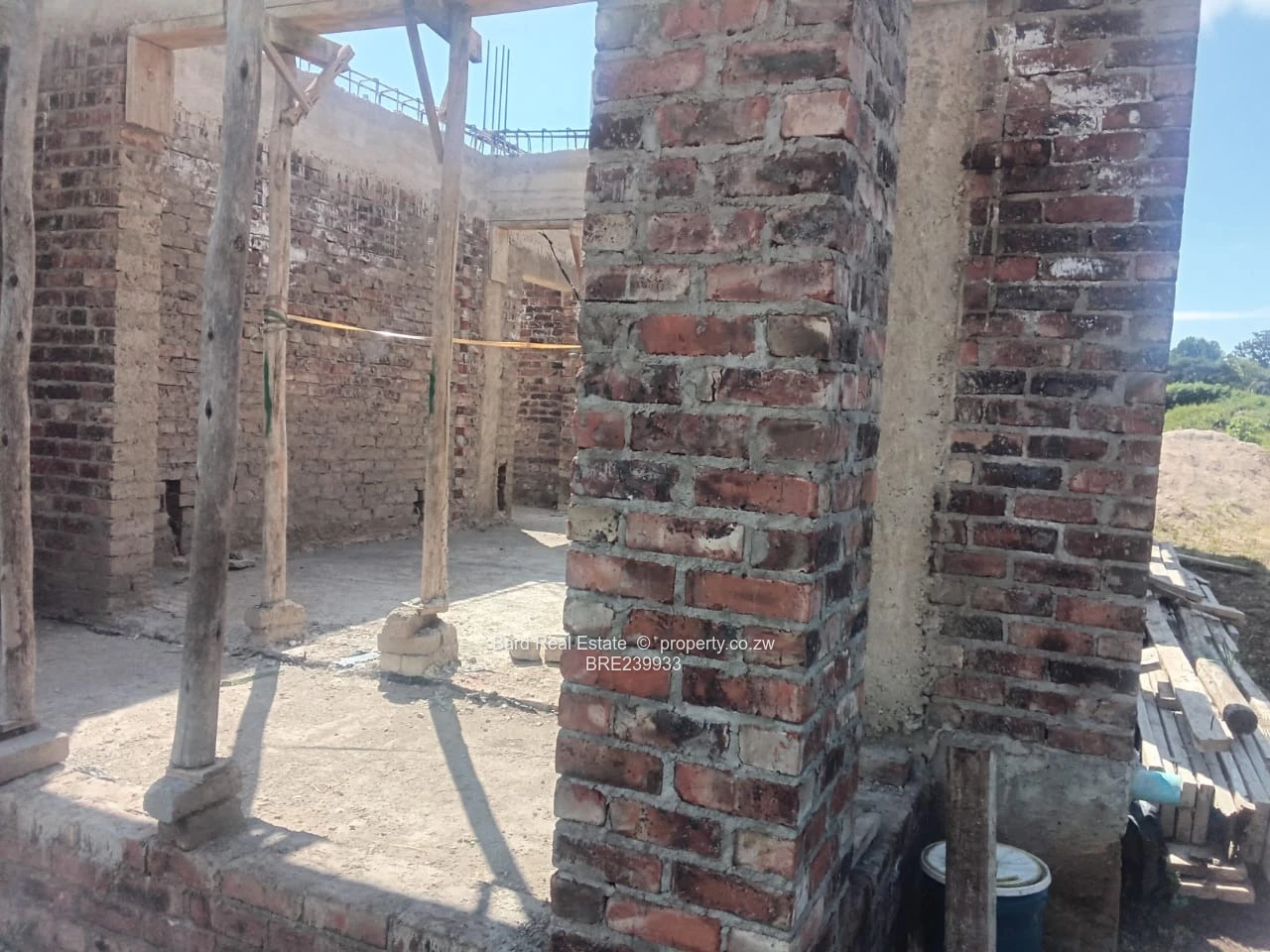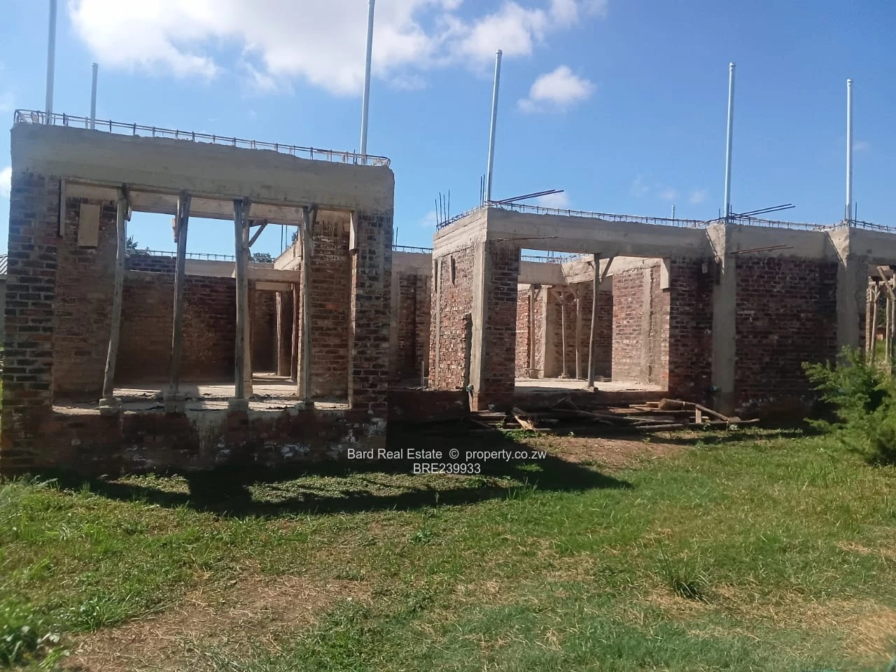 In the supplied photo you can see the development at shell stage: exposed brickwork, concrete columns and open window and door openings ready for finishing. The site has level lawns and space for secure parking, gardens or additional landscaping. With the main structure already in place, this is an ideal project for a developer or owner-occupier who wants to complete interiors and finishes to taste and maximize value. Located in sought-after Borrowdale, the complex benefits from proximity to amenities, quality schools and excellent access routes.