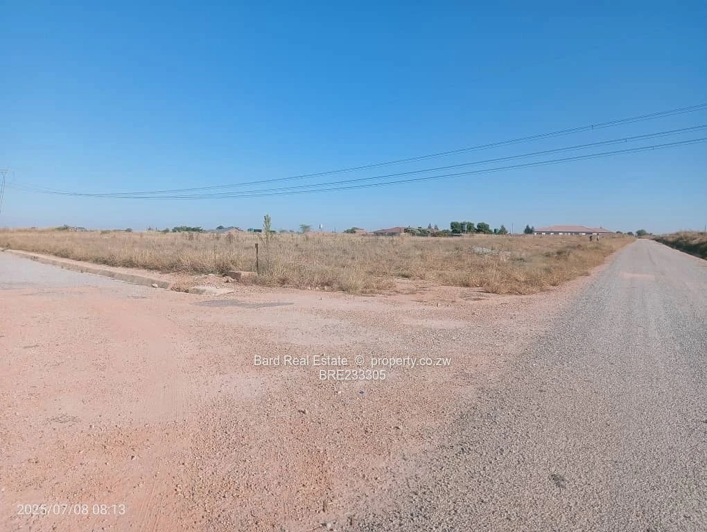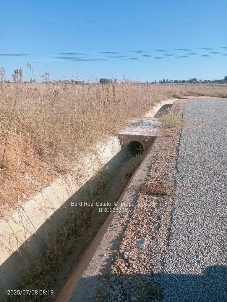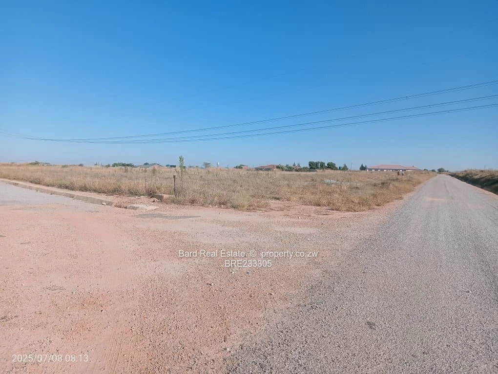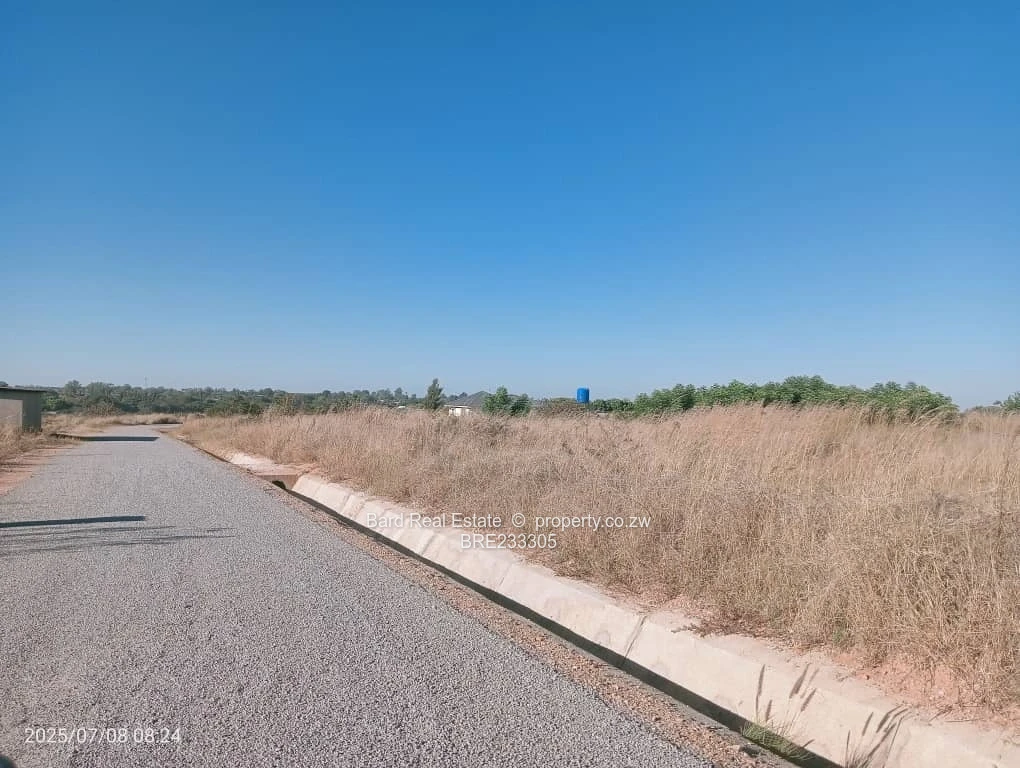 Prime 2,000 m² residential stands for sale in Sunway City, Harare East — perfectly positioned with main road frontage and excellent development potential. The plots sit on a level, easy-to-build site flanking a well-constructed tarred road with concrete stormwater channels in place and visible overhead power lines, indicating established electrical infrastructure. The stands offer sweeping open views, clear sightlines from the main road, and straightforward access for construction vehicles. Ideal for a spacious family home, duplex development or long-term investment in a growing suburb. Ready for immediate development with mains services and solid road frontage. Contact us today to arrange a site visit and secure this strategic Sunway City parcel.